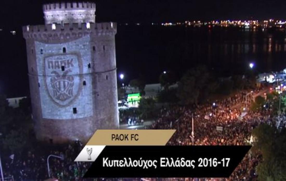 Οπαδοί του ΠΑΟΚ γλεντούν στον Λευκό Πύργο την κατάκτηση του Κυπέλλου (ΒΙΝΤΕΟ)