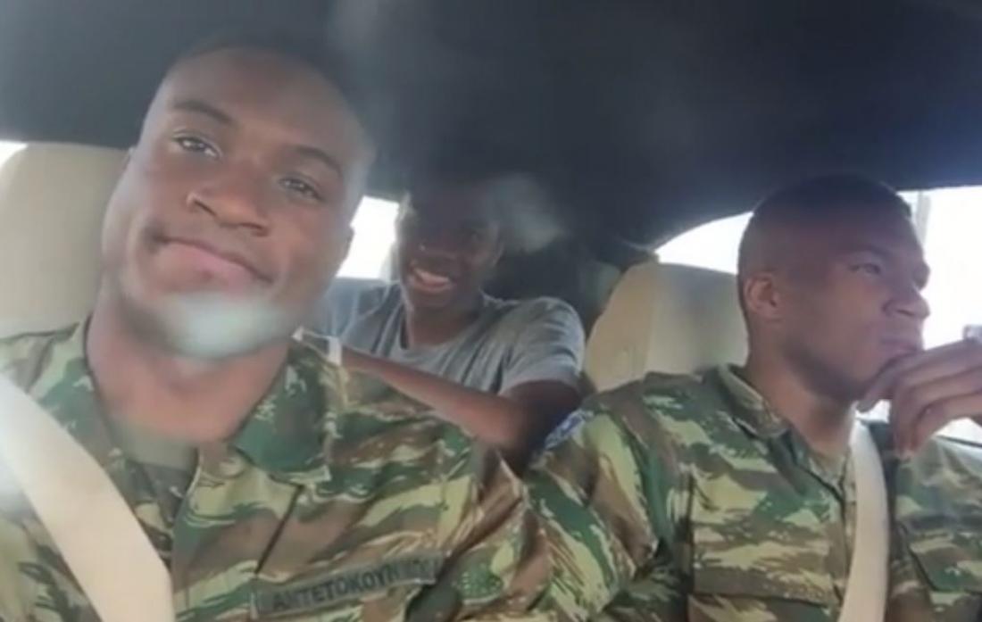 Οι αδελφοί Αντετοκούνμπο ορκίστηκαν στο κέντρο εκπαίδευσης τεθωρακισμένων στον Αυλώνα, ενώ μαζί τους βρέθηκε και ο μικρός αδελφός τους Κώστας.