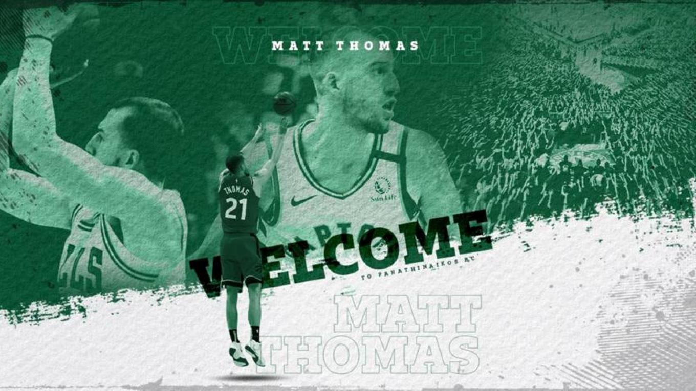 Η ΚΑΕ Παναθηναϊκός ανακοινώνει την απόκτηση του Ματ Τόμας μέχρι το τέλος της αγωνιστικής περιόδου 2023-2024.