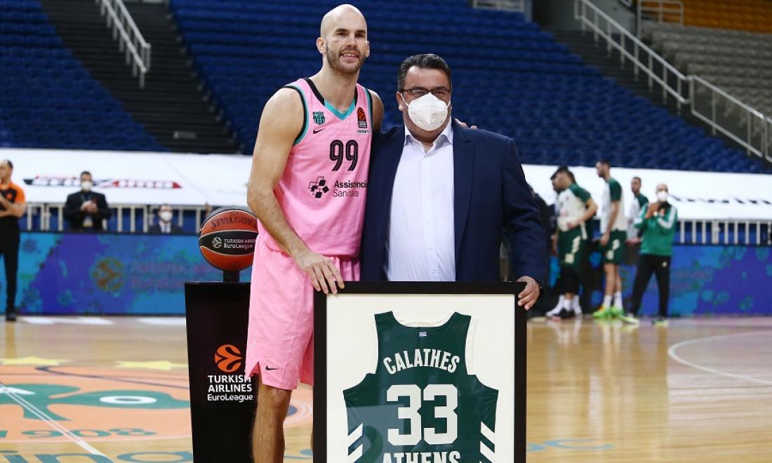 Ο Νικ Καλάθης επέστρεψε στο ΟΑΚΑ, αλλά ως αντίπαλος, καθώς πλέον αγωνίζεται στην Μπαρτσελόνα και ο Παναθηναϊκός τον τίμησε πριν την έναρξη την αναμέτρησης.