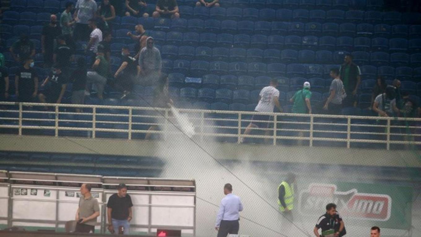 Αρκετοί οπαδοί των «πράσινων» αντέδρασαν έντονα μετά την ανακοίνωση για την εντολή εκκένωσης και άρχισαν να σπάνε καθίσματα και να προκαλούν διάφορες φθορές στο ΟΑΚΑ, το οποίο-θυμίζουμε-έχει περάσει στην κυριότητα της ΚΑΕ Παναθηναϊκός.