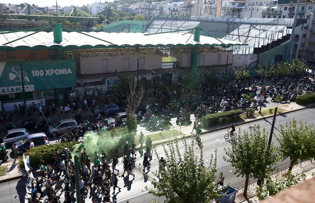 Λίγο μετά τις 14:00 άρχισε η πορεία διαμαρτυρίας των οπαδών του Παναθηναϊκού εκφράζοντας την δυσαρέσκειά τους για την κατάσταση στην ομάδα.