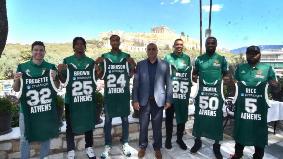 Οι Τζίμερ Φριντέτ, Ουέσλι Τζόνσον, Ταϊρίς Ράις, Τζέικομπ Ουάλι, Μπεν Μπέντιλ και Ρίον Μπράουν παρουσιάστηκαν από τον Παναθηναϊκό ΟΠΑΠ σε μια όμορφη εκδήλωση στη σκιά του ιερού βράχου της Ακρόπολης.
