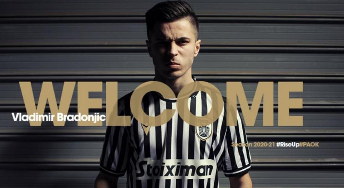 Η ΠΑΕ ΠΑΟΚ ανακοινώνει την απόκτηση του Βλάντιμιρ Μπράντονιτς από την Ράντνικ Μπιέλινα. Ο Βόσνιος αριστερός εξτρέμ υπέγραψε συμβόλαιο συνεργασίας με τον Δικέφαλο για τα επόμενα τέσσερα χρόνια και θα φοράει τη φανέλα με τον αριθμό 99.
