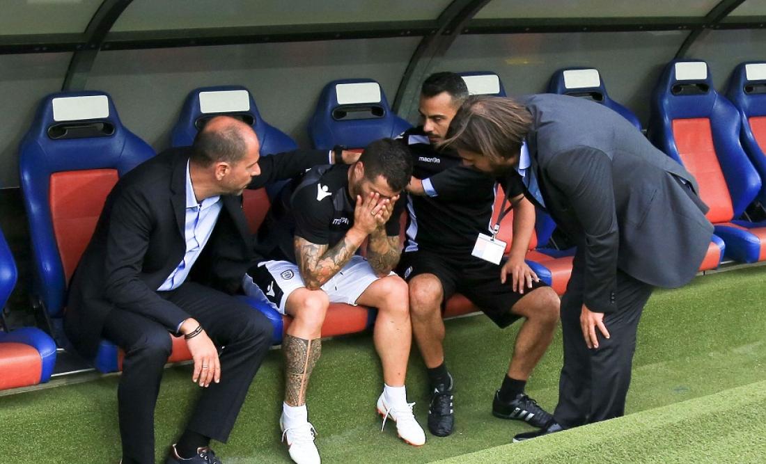 Ο αρχηγός της ομάδας αποχώρησε στο φινάλε της προθέρμανσης με τραυματισμό στον τένοντα των οπίσθιων μηριαίων στην έκφυση από τη λεκάνη και είναι εξαιρετικά αμφίβολο αν θα ξεπεράσει το πρόβλημά του μέχρι το πρώτο ματς, στην Τούμπα σε μια εβδομάδα (8/8).
