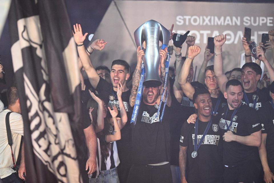 Ο Πορτογάλος θρύλος πήρε θέση και την κούπα στα χέρια του και τη σήκωσε στον φλεγόμενο ουρανό της Τούμπας.