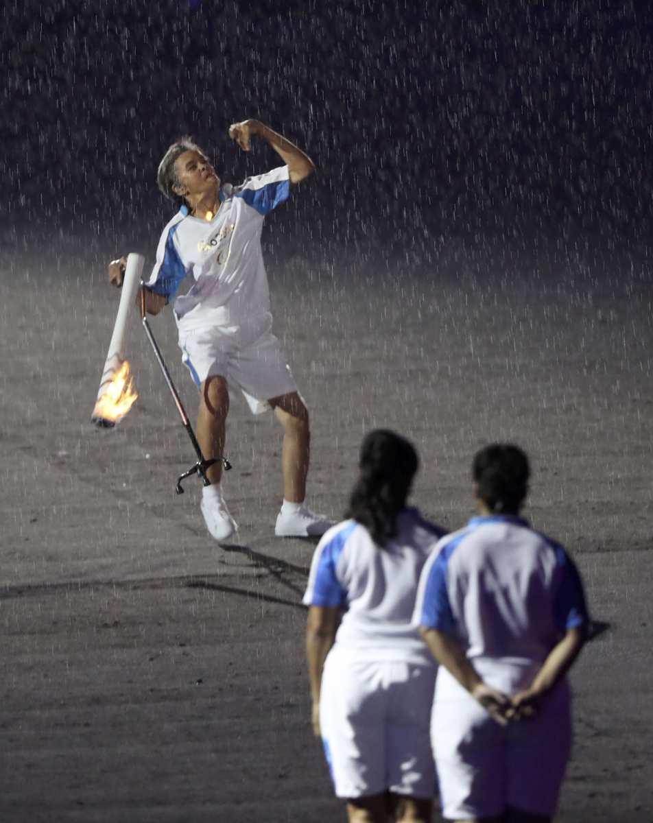 Η πιο συγκινητική στιγμή... Ήταν η στιγμή που στο Μαρακανά μπήκε η Μάρσια Μαλσάρ, παραολυμπιονίκης του 1984. Η Βραζιλιάνα αθλήτρια στο αριστερό της χέρι την ολυμπιακή φλόγα. Είχε μόλις μπει στο Μαρακανά υπό καταρρακτώδη βροχή.