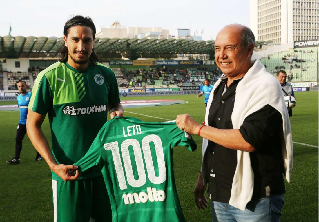 Οι Σεμπάστιν Λέτο και Νάνο, συμπλήρωσαν 100 επίσημες συμμετοχές με τη φανέλα του Παναθηναϊκού και βραβεύτηκαν, από την παλιά δόξα του συλλόγου, Χουάν Ραμόν Ρότσα. Ο Αργεντίνος ανέβασε στο λογαριασμό του στο twitter και το ανάλογο μήνυμα.