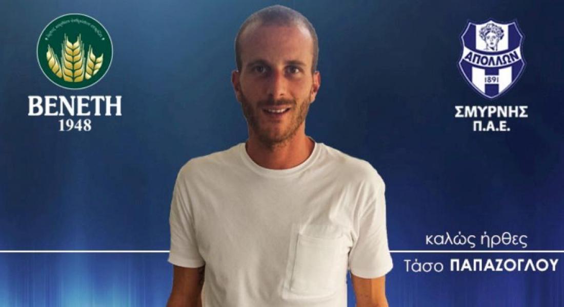 Πρόκειται για την 11η μεταγραφή του Απόλλωνα Σμύρνης την φετινή σεζόν, ενώ όλα δείχνουν πως τις ερχόμενες ημέρες ο Γκονζάλο Καστιγιέχος θα αποτελέσει την επόμενη κίνηση της Ελαφράς Ταξιαρχίας ! Η ανακοίνωση "Η ΠΑΕ Απόλλων Σμύρνης ανακοινώνει την απόκτηση του ποδοσφαιριστή Τάσου Παπάζογλου . Γεννημένος στις 24 Σεπτεμβρίου 1988 , αγωνίζεται ως αμυντικός και έχει παίξει σε Παναιτωλικό , Ξάνθη , ΑΠΟΕΛ , Ολυμπιακό και Πανσερραϊκό ενώ υπήρξε διεθνής με τις Εθνικές ομάδες Νέων και Ελπίδων ".
