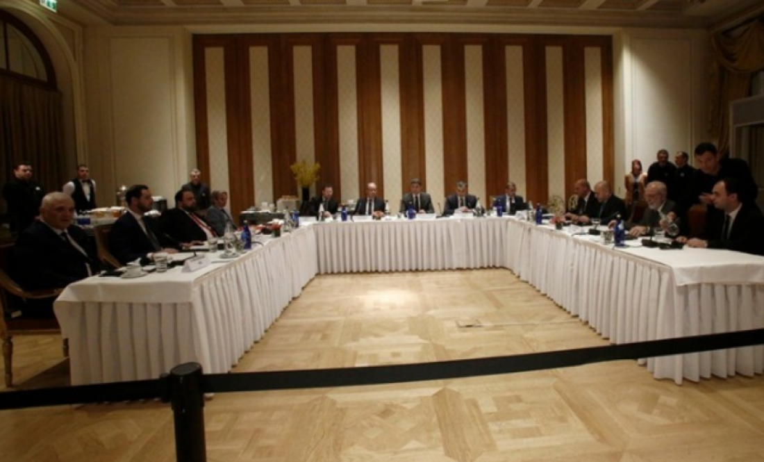 Σε εξέλιξη βρίσκεται η συνάντηση των «Big 4» στο ξενοδοχείο Μ. Βρετανία. Οι κύριοι Αλαφούζος, Μαρινάκης, Μελισσανίδης και Σαββίδης, υπό δρακόντεια μέτρα ασφαλείας, παρουσία του υφυπουργού Αθλητισμού Λευτέρη Αυγενάκη συζητούν με τους με τους επιτελείς της FIFA και της UEFA για τις αντιθέσεις των τεσσάρων μεγάλων ποδοσφαιρικών συλλόγων, που δημιουργούν ένα νοσηρό κλίμα στο ελληνικό ποδόσφαιρο.