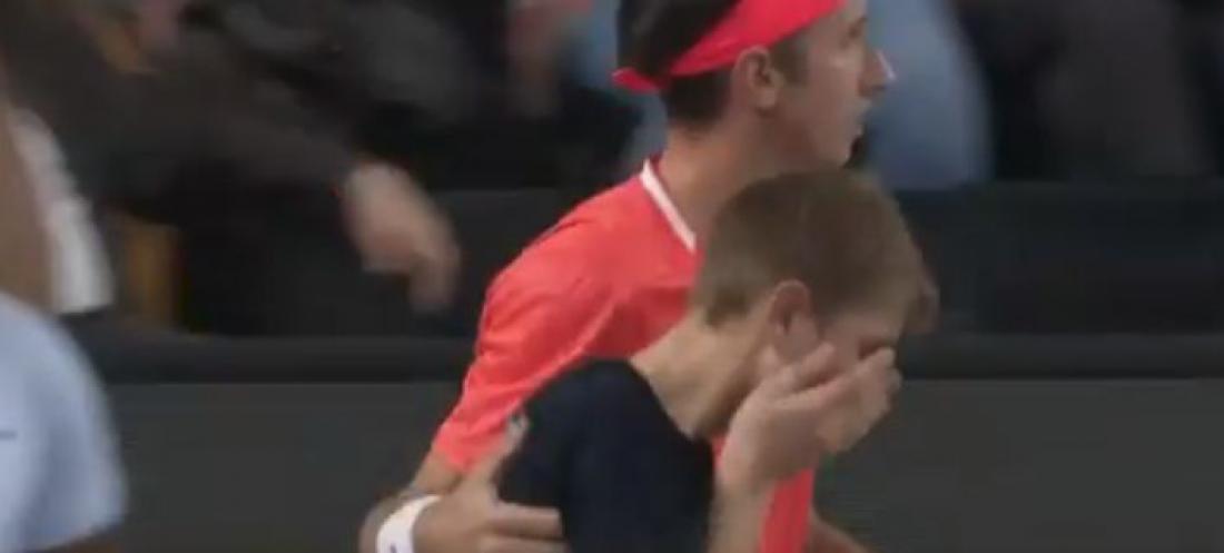 Το χτύπημα φαίνεται πως ήταν αρκετά δυνατό με αποτέλεσμα το ball boy να αποχωρήσει με δάκρυα από τον πόνο και έχοντας τα χέρια του στο μάτι.