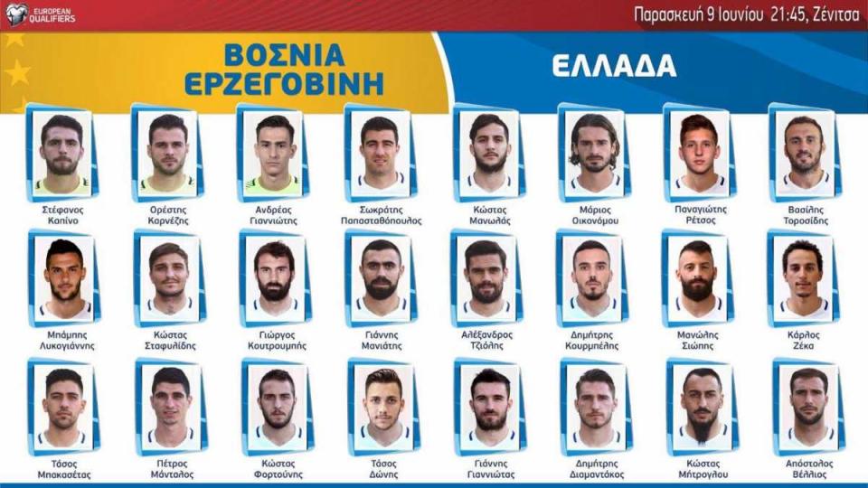Οι παίκτες που εχουν προεπιλεγεί για την αποστολή ειναι:
