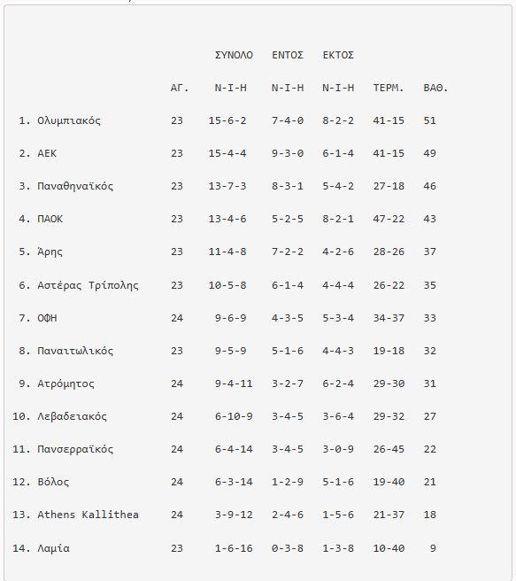 Από την άλλη, ο ΠΑΟΚ έμεινε πλέον μόνο με το Πρωτάθλημα, καθώς μεσοβδόμαδα και με δεύτερη ήττα αποκλείστηκε από τη Στεάουα Βουκουρεστίου. Η ομάδα του Ράζβαν Λουτσέσκου πηγαίνει στο Φάληρο να παίξει τα ρέστα της, έχοντας μείνει κι εκτός Κυπέλλου, αφού σε περίπτωση ήττας θα βρεθεί 11 βαθμούς πίσω από την κορυφή.