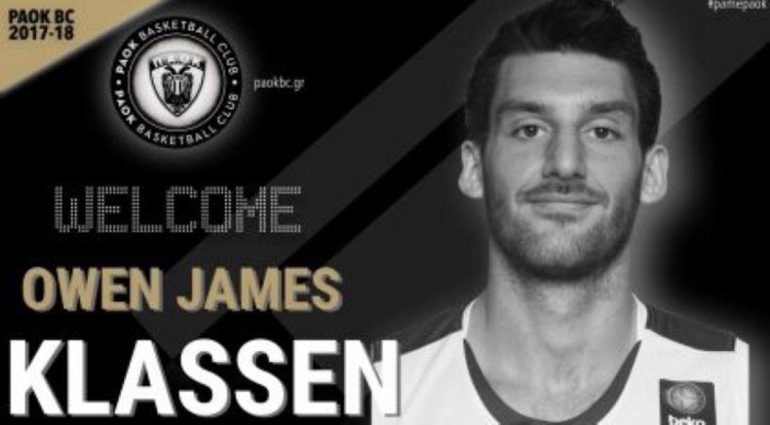 "Η ΚΑΕ ΠΑΟΚ ανακοινώνει την συμφωνία με τον Καναδό καλαθοσφαιριστή Owen James Klassen, για την αγωνιστική περίοδο 2017-18.