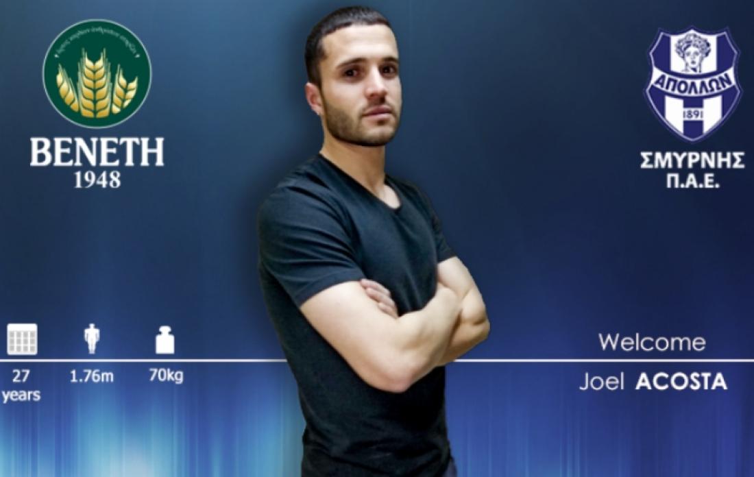 "Η ΠΑΕ Απόλλων Σμύρνης ανακοινώνει την απόκτηση του Αργεντινού ποδοσφαιριστή Ζοέλ Γκουστάβο Ακόστα. Γεννημένος στις 16 Ιανουαρίου 1991, αγωνίζεται ως επιθετικός. Έχει παίξει σε Μπόκα Τζούνιορς, Σιένα, Αλμιράντε Μπράουν, Ολίμπο ντε Μπαΐα Μπλάνκα, Πεσκάρα, Αλδοσίβι και Ο' Χίγκινς ".