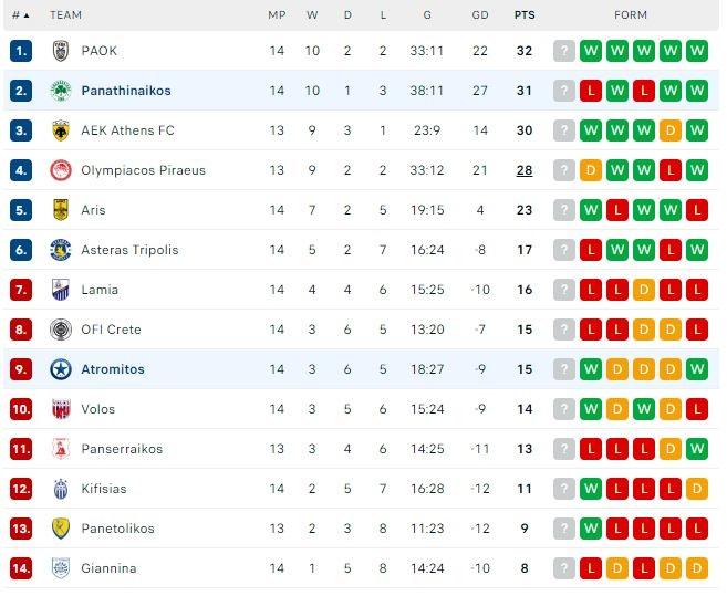 Δείτε πώς διαμορφώνεται η βαθμολογία της Σούπερ Λίγκας, τα αποτελέσματα της 14ης αγωνιστικής και το πρόγραμμα της επόμενης «στροφής»: