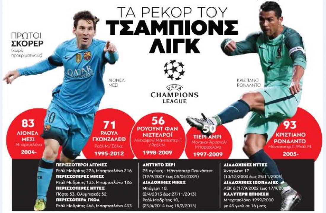 Το Σάββατο γίνεται ο τελικός του Τσάμπιονς Λιγκ, ανάμεσα στην Ρεάλ Μαδρίτης και την Ατλέτικο Μαδρίτης. Για "ορεκτικό" ας θυμηθούμε κάποια από τα ρεκόρ της διοργάνωσης.
