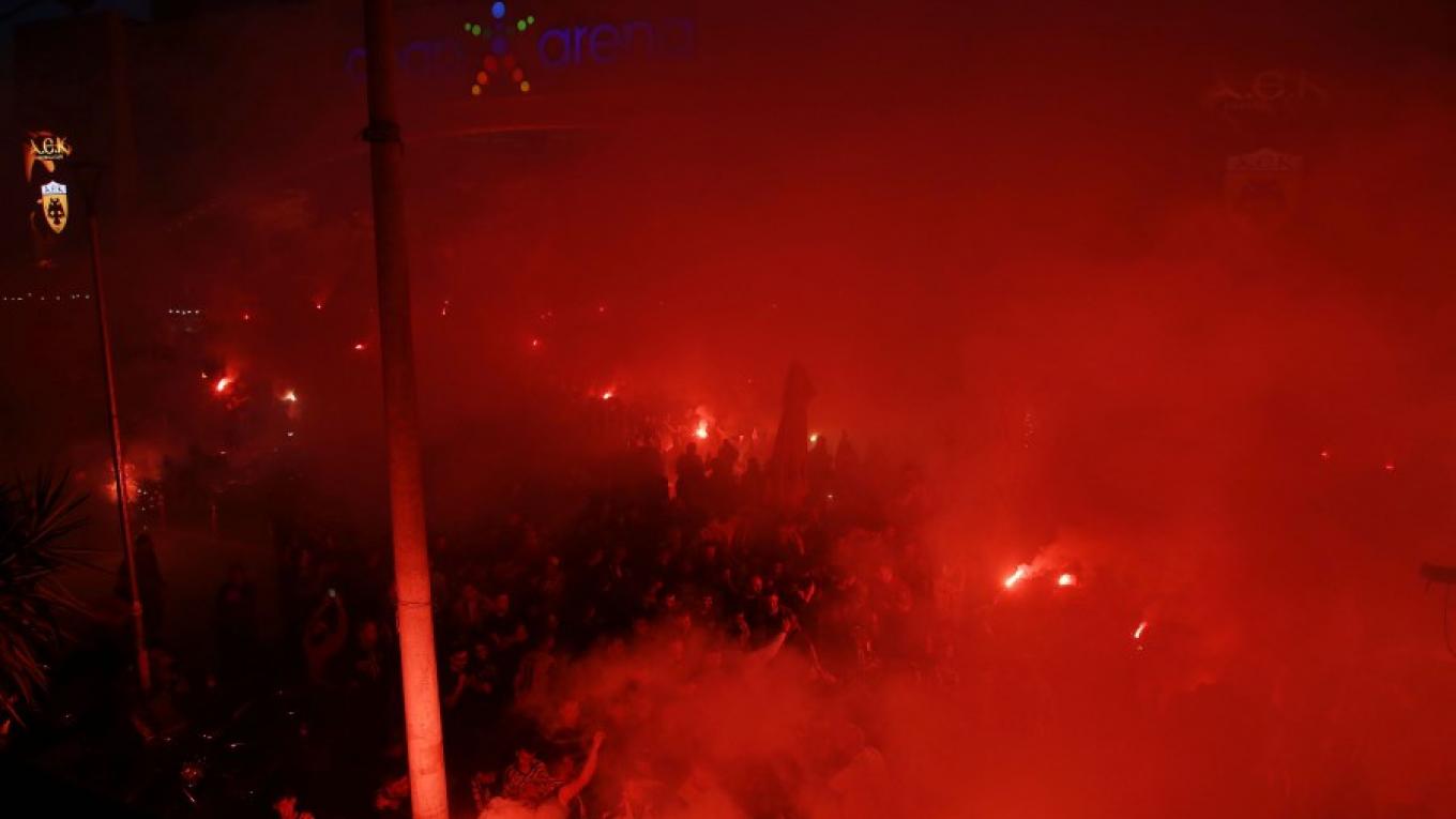 Πάρτι έξω από την OPAP Arena έστησαν οι οπαδοί της ΑΕΚ που συγκεντρώθηκαν έξω από το γήπεδο για να παρακολουθήσουν τον τελικό Κυπέλλου Ελλάδας Novibet απέναντι στον ΠΑΟΚ.