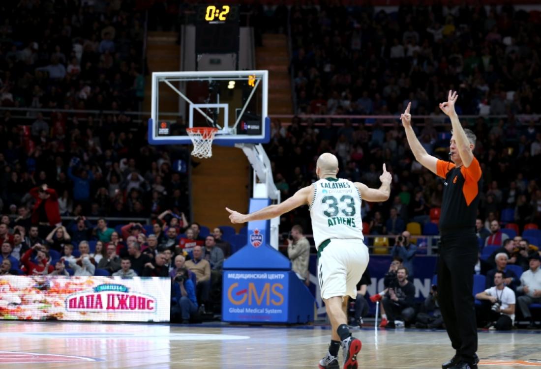 Ο ηγέτης Νικ Καλάθης με απίθανο τρίποντο (σ.σ. με ταμπλό) από τα 8 μέτρα στο φινάλε του αγώνα, χάρισε μια τεράστια νίκη στον εξαιρετικό Παναθηναϊκό ΟΠΑΠ μέσα Μόσχα με 78-77 επί της ΤΣΣΚΑ.