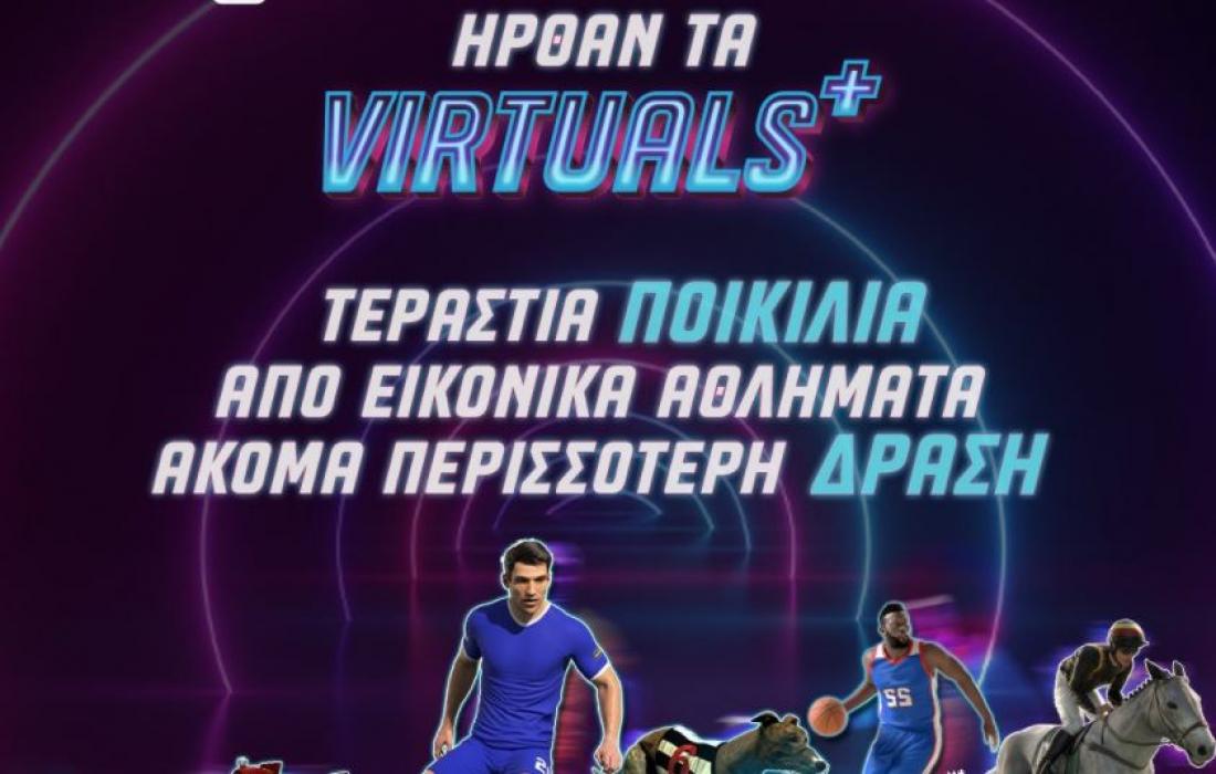 Tα νέα Virtuals+ προσφέρουν πολλές στοιχηματικές επιλογές για 21 εικονικά αθλήματα όπως Virtual ποδόσφαιρο, μπάσκετ, τένις, ιππoδρομίες, κυνοδρομίες, αγώνες φόρμουλας και αγώνες ποδηλάτου.