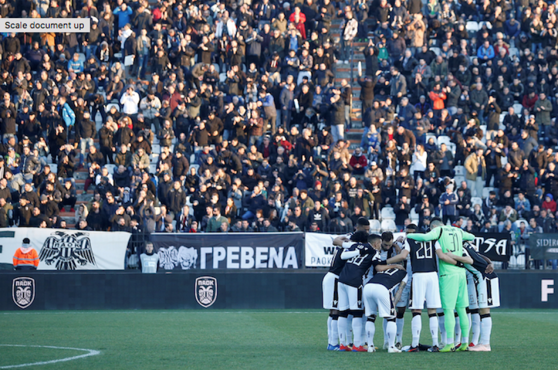 Συγκεκριμένα, από το γήπεδο της Τούμπας, υπήρξε πανό, αναφερόμενο στη συμφωνία των Πρεσπών, ενώ σε αρκετές στιγμές μέσα στο παιχνίδι ακούστηκε το σύνθημα: ««Αλήτες, προδότες, πολιτικοί, η Μακεδονία είναι ελληνική»!