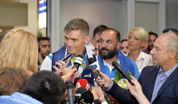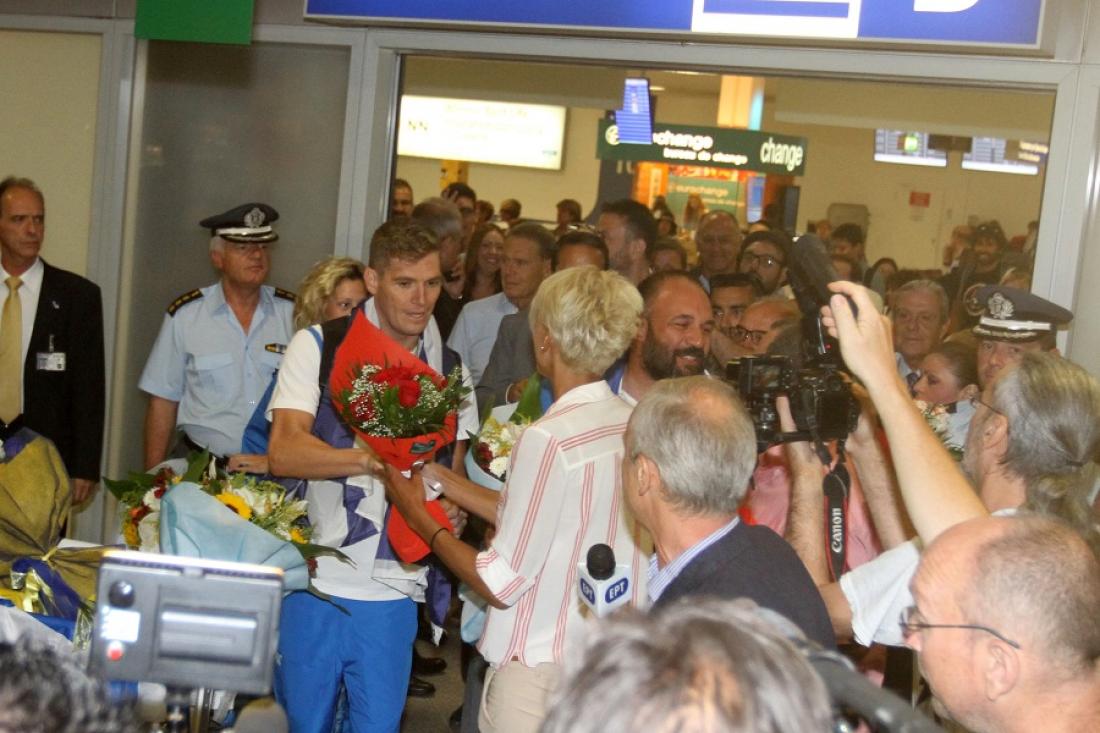 Επέστρεψε στην Αθήνα ο κάτοχος του αργυρού μεταλλίου στα 10χλμ ανοικτής θαλάσσης στους Ολυμπιακούς Αγώνες του Ρίο, Σπύρος Γιαννιώτης. Τον υποδέχτηκαν στο αεροδρόμιο Ελ. Βενιζέλος πλήθος κόσμου, καθώς και πολλοί δημοσιογράφοι. Μαζί του επέστρεψαν στην Ελλάδα ο προπονητής του Νίκος Γέμελος και η συναθλήτριά του Κέλλυ Αραούζου, η οποία κατετάγη 11η στον αντίστοιχο αγώνα των γυναικών.