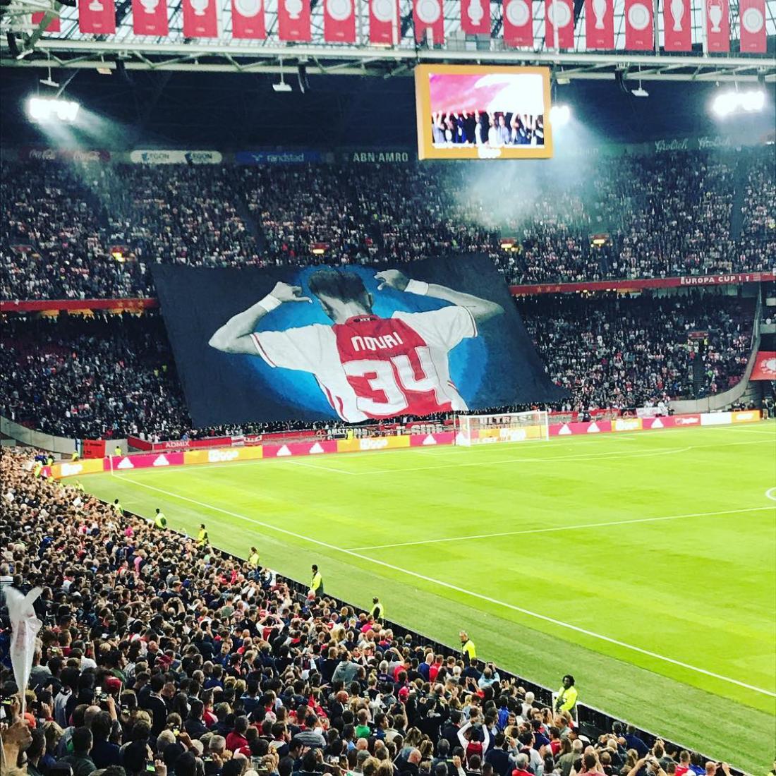 Ajax taraftarlarının Nice maçı öncesinde Abdelhak Nouri için açtığı pankart