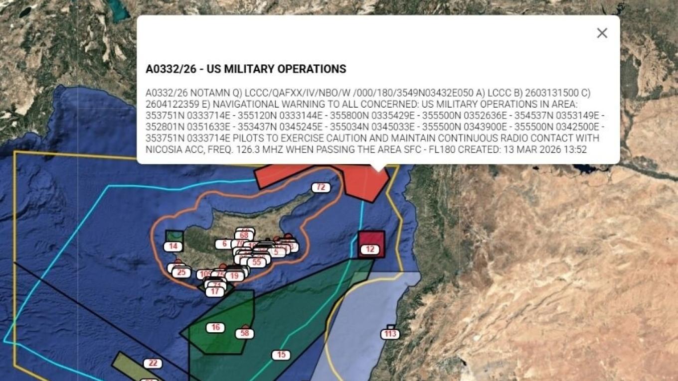 Όπως μεταδίδεται στα κατεχόμενα, ανακοίνωση του «υπουργείου» αναφέρει ότι η NOTAM της ΚΔ αφορά μια μεγάλη θαλάσσια περιοχή που καλύπτει τα νότια και ανατολικά του νησιού για πιθανές στρατιωτικές δραστηριότητες εκεί.