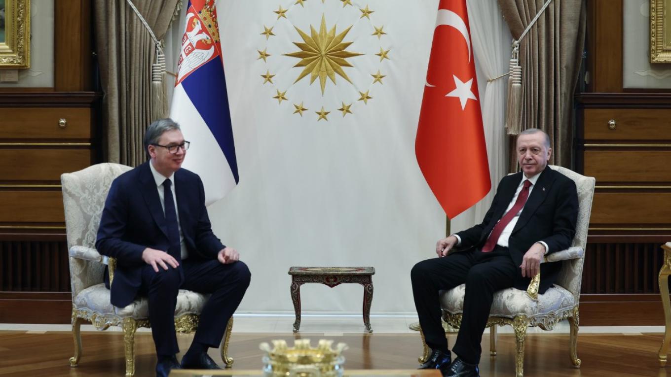Ο Πρόεδρος της Τουρκίας, Ρετζέπ Ταγίπ Ερντογάν, υποδέχθηκε την Πέμπτη στην Άγκυρα τον Σέρβο ομόλογό του, Αλεξάνταρ Βούτσιτς, σε μια συνάντηση που επικεντρώθηκε στην εμβάθυνση των διμερών σχέσεων και την εξέταση κρίσιμων ζητημάτων περιφερειακής ασφάλειας.