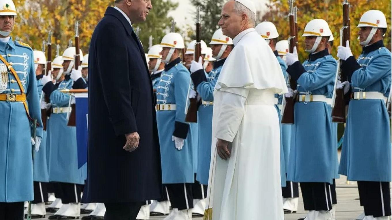 Ο Ποντίφικας έγινε δεκτός με τιμές αρχηγού κράτους και κανονιοβολισμούς από τον πρόεδρο της Τουρκίας Ρετζέπ Ταγίπ Ερντογάν, στο «παλάτι» του στην Άγκυρα.