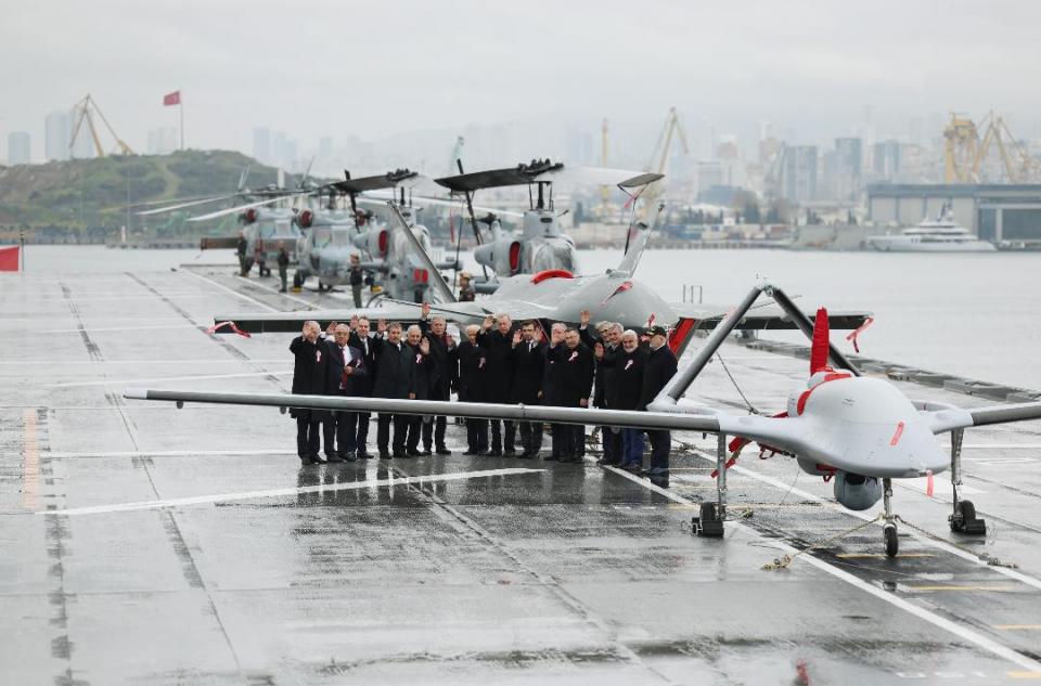 · Ένα ελικοφόρο UAV Bayraktar TB3, που είναι ένα μέσου ύψους επιθετικό UCAV με πτυσσόμενες πτέρυγες ώστε να μειωθεί το εκπέτασμα των πτερύγων του και να φιλοξενείται ευκολότερα (και σε μεγαλύτερους αριθμούς) από ένα «ελικοπτεροφόρο».