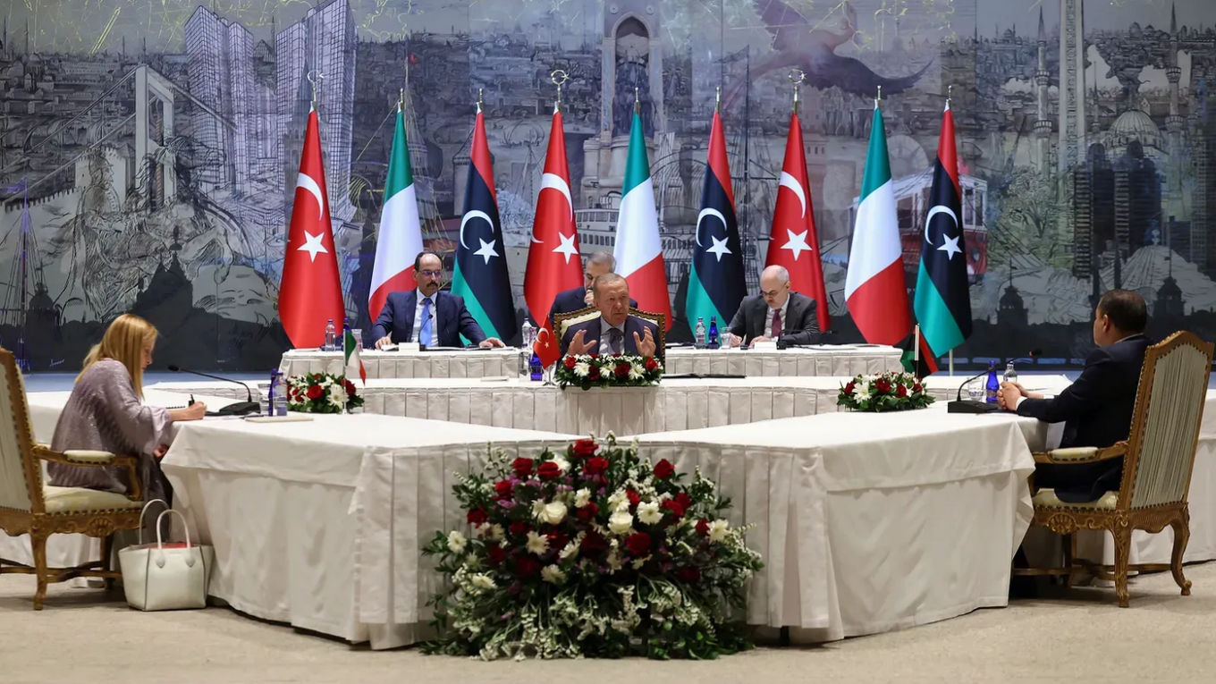 Έχουν περάσει πλέον δώδεκα ημέρες απ' όταν μια συνάντηση-έκπληξη έλαβε χώρα στην Κωνσταντινούπολη, στα γραφεία της προεδρίας στο Ντολμάμπαχτσε. Χωρίς καμία προειδοποίηση, ανακοίνωση της προεδρίας την τελευταία στιγμή ανέφερε ότι η Ιταλίδα πρωθυπουργός Τζόρτζια Μελόνι και ο πρωθυπουργός της Λιβύης Αμπντούλ Χαμίντ Ντμπέιμπα έφτασαν στο γραφείο της προεδρίας και συναντήθηκαν κεκλεισμένων των θυρών με τον Tούρκο πρόεδρο Ερντογάν και τους στενούς του συνεργάτες.
