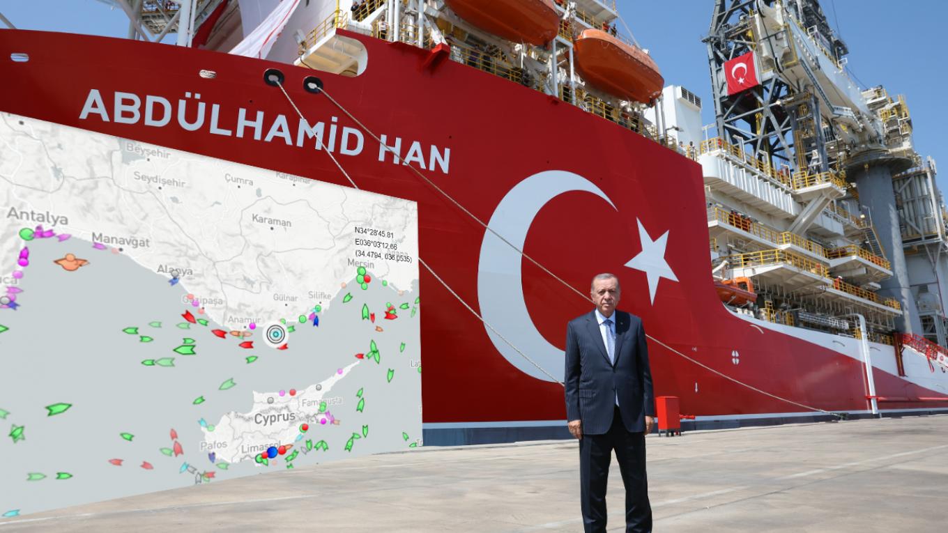 Εντός της τουρκικής υφαλοκρηπίδας, σε απόσταση 55 χιλιομέτρων από την τουρκική ακτή της Αττάλειας, το γεωτρύπανο «Αμπντουλ Χαμίντ Χαν».
