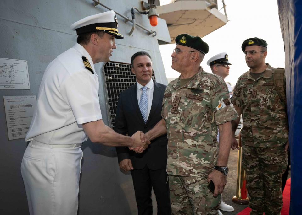 Την περασμένη Πέμπτη κατέπλευσε στο λιμάνι της Λεμεσού το πυραυλοφόρο αντιτορπιλλικό USS “Arleigh Burke” (DDG-51), που είναι και επικεφαλής της ομώνυμης κλάσεως σκαφών των Ναυτικών Δυνάμεων των ΗΠΑ. Στο σκάφος αμέσως επιβιβάστηκαν ο Υπουργός Αμύνης της Κυπριακής Δημοκρατίας Μιχάλης Γιωργάλλας, ο Αρχηγός του Γενικού Επιτελείου Εθνικής Φρουράς Αντιστράτηγος Δημόκριτος Ζερβάκης, συνοδευόμενοι και από τη δραστήρια Πρέσβη των ΗΠΑ στη Λευκωσία, την κυρία Julie Fisher, όπου έγινε η σχετική τελετή, ανταλλαγή αναμνηστικών με τον κυβερνήτη του σκάφους και τα υπόλοιπα «παραδοσιακά». Μάλιστα στον επίσημο λογαριασμό της Πρεσβείας των ΗΠΑ στη Λευκωσία αναρτήθηκε σχετικό μήνυμα με τη φωτογραφία του αντιτορπιλλικού, καλωσορίζοντάς το στην Κύπρο, με την επισήμανση (μεταξύ άλλων) ότι «η διμερής συνεργασία (ΗΠΑ – Κύπρου) ενισχύσει τη σταθερότητα και την ασφάλεια στην περιοχή».