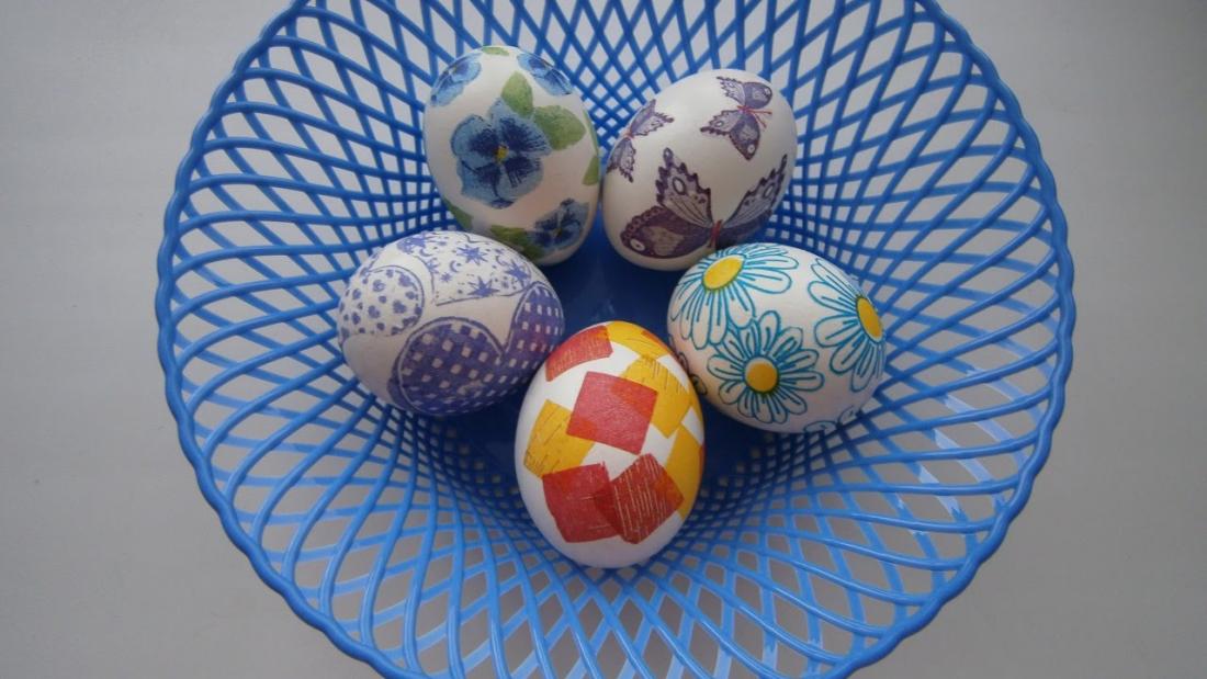 Χαρτοπετσέτσες με σχέδια που σας αρέσουν, κόλλα για χαρτί και φυσικά αυγά, για μια πρωτότυπη πασχαλινή διακόσμηση. Γρήγορη και εύκολη πάνω απ'όλα.