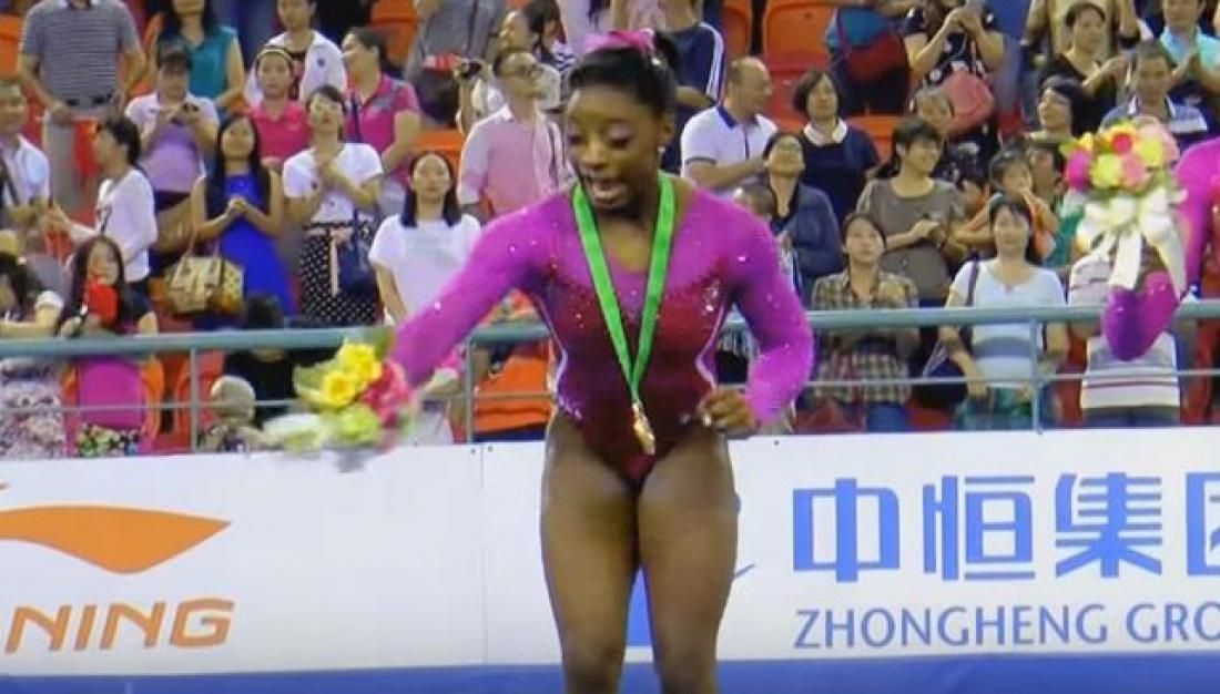 Η Simone Biles, 4 φορές νικήτρια χρυσών μεταλλίων, "έχασε τη θέση" της στην πρωτιά από μια...μέλισσα! Καλά ακούσατε! Σε αγώνες στην Κίνα το 2014, η γνωστή αθλήτρια ενόργανης γυμναστικής την ώρα που ανέβαινε στο βάθρο για την πρωτιά, ήρθε αντιμέτωπη με μια μέλισσα! Η αντίδρασή της είναι επική...Δείτε την στο παραπάνω βίντεο.