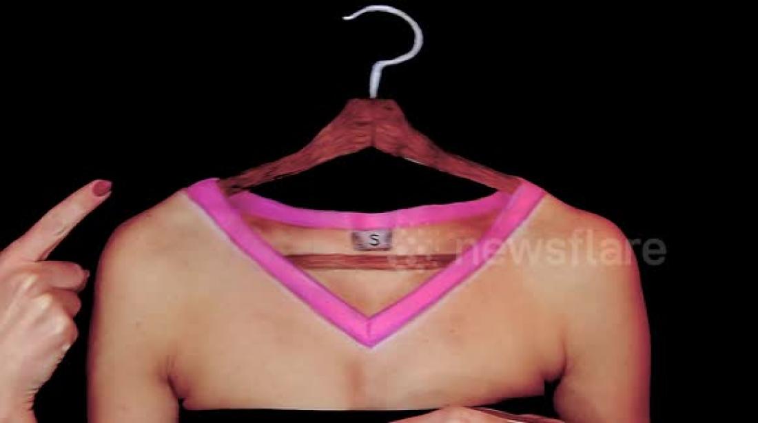 Μια γυναίκα μεταμορφώνεται σε κρεμάστρα! Η μακιγιέζ Μιριάνα Κίκα Μιλόσεβιτς ζωγραφίζει πάνω της ένα πουλόβερ και μια κρεμάστρα και εξαφανίζεται!