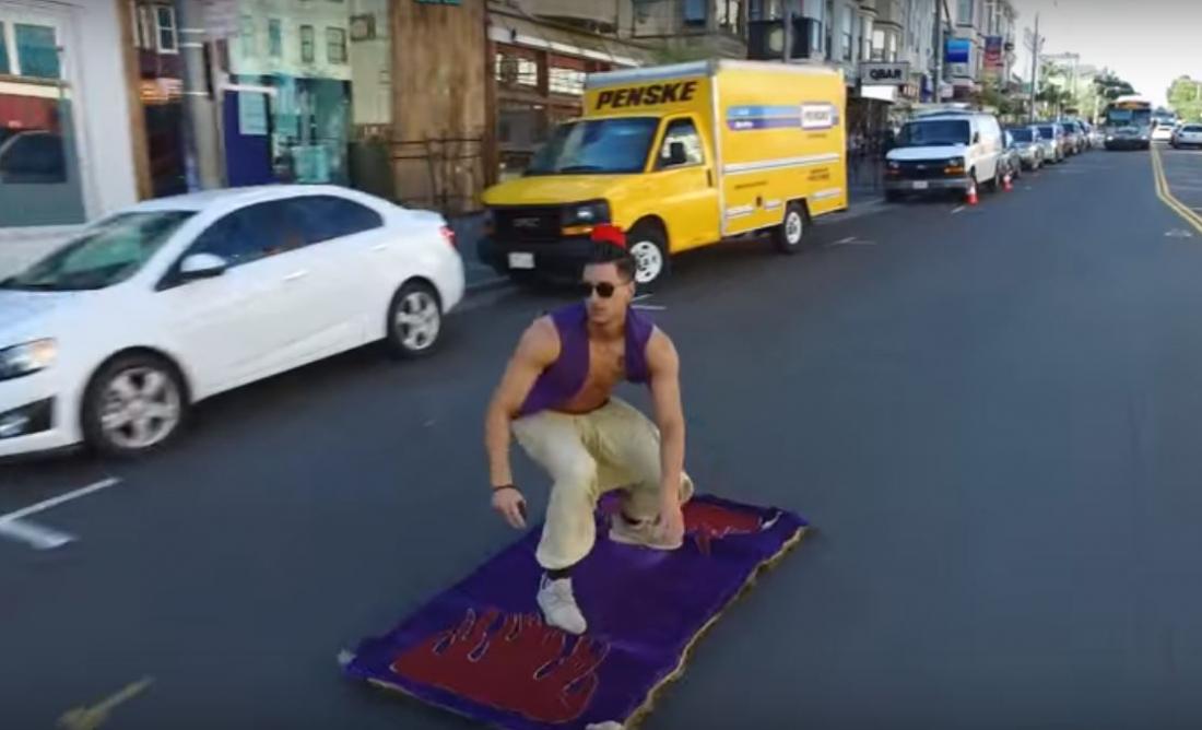 Πιο συγκεκριμένα το ζευγάρι ντύθηκε Αλαντίν και Τζασμίν και ανέβηκαν πάνω στο αυτοσχέδιο χαλί τους που φυσικά από κάτω έχει ρόδες και άφησαν άφωνους τους περαστικούς στους δρόμους του Σαν Φρανσισκό των Η.Π.Α.