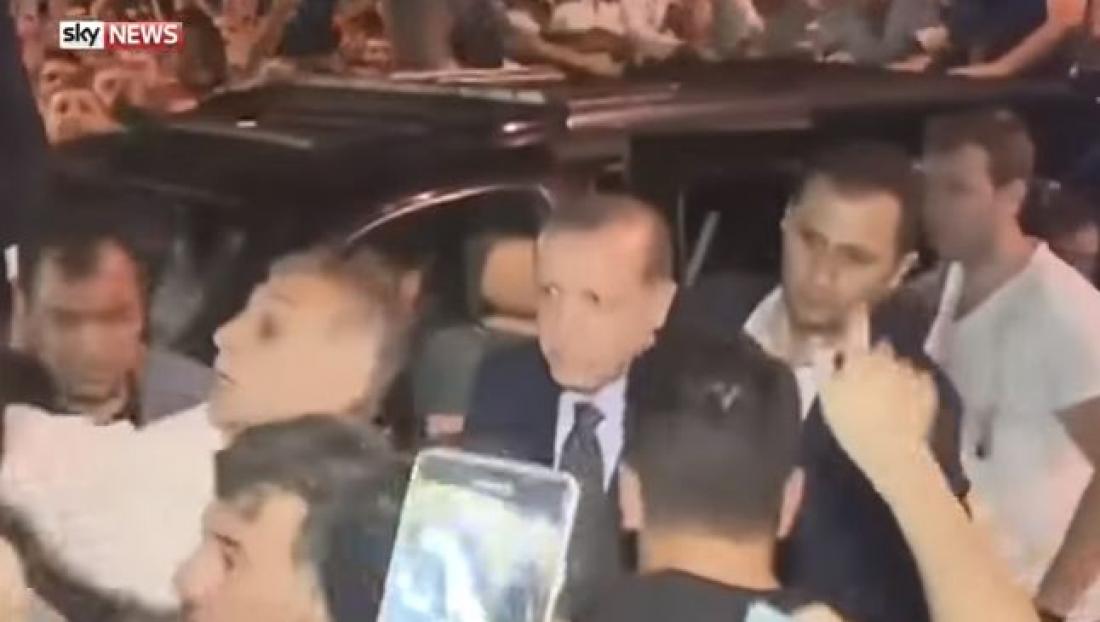 Το αεροπλάνο του Τούρκου προέδρου, μετά του πολλούς κύκλους που έκανε πάνω από την Κωνσταντινούπολη, προσγειώθηκε τελικά νωρίς τα ξημερώματα στο «Ατατούρκ» με χιλιάδες κόσμο να τον αποθεώνουν.