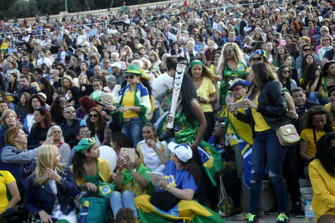 Στιγμιότυπα από την τελετή παράδοσης της Ολυμπιακής Φλόγας στην Ολυμπιακή Επιτροπή της Βραζιλίας, παρουσία του Προέδρου της Δημοκρατίας, χτες στο Καλλιμάρμαρο.