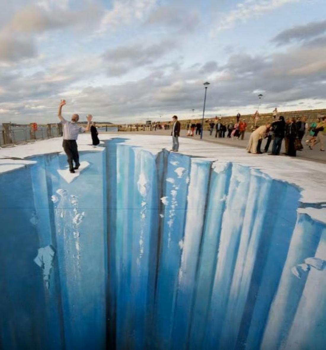 Το ενδιαφέρον βίντεο της ημέρας είναι χωρίς αμφιβολία το παραπάνω. Τα σχέδια 3d που δημιουργούν καλλιτέχνες σε δρόμους, κάνουν το γύρο του κόσμου! Το βίντεο μάς δείχνει πώς τελικά γίνονται αυτά τα εντυπωσιακά εφέ που σε κάνουν να πιστεύεις ότι η εικόνα που είναι ζωγραφισμένη, είναι αληθινή. Το σχέδιο; Πάγος που σπάει! Και η αντίδραση των ανθρώπων δεν ήταν άλλη από το να κάθονται σε σημεία που έδιναν την ψευδαίσθηση ότι είναι έτοιμοι να πέσουν από τον πάγο!