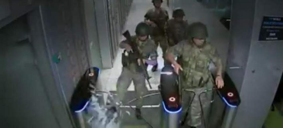 Τούρκοι στρατιώτες εισέβαλαν στον χώρο, έσπασαν το σύστημα εισόδου με κλωτσιές, έδιωξαν τους εργαζόμενους από τον χώρο και τους παρουσιαστές και είχαν αυτοί πλέον τον έλεγχο του κρατικού καναλιού της Τουρκίας, TRT για κάποιες ώρες.