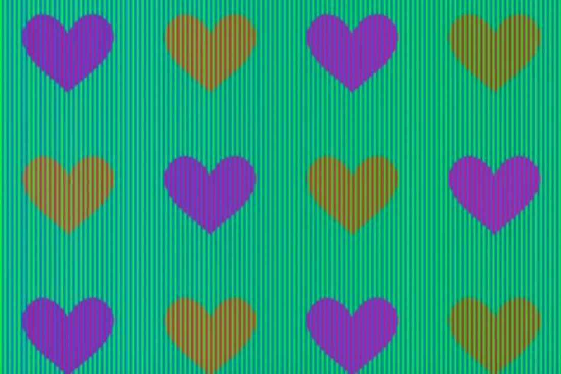Ρίξτε μια ματιά στην παραπάνω εικόνα. Σίγουρα αυτό που βλέπετε είναι μωβ και πορτοκαλί καρδιές μέσα σε ένα πλαίσιο από πράσινες και μπλε κάθετες γραμμές. Αλλά στην πραγματικότητα όλες οι καρδιές στην εικόνα έχουν το ίδιο χρώμα!