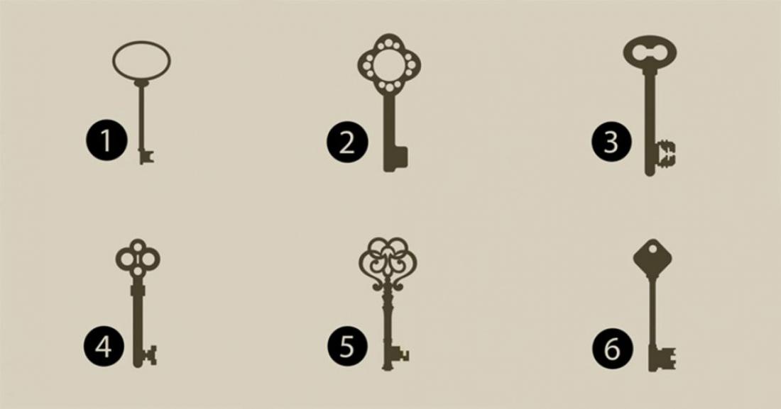 1. Διαλέξατε το πιο συνηθισμένο και απλό κλειδί. Αλλά παρά την απλότητά του, το κλειδί αυτό είναι και το πιο αποτελεσματικό στο άνοιγμα πορτών. Σημαίνει πως είστε λογικοί, αποφασιστικοί και πολύ αναλυτικοί. Ωστόσο, μερικές φορές μπορεί να είστε ευάλωτοι και εύθραυστοι.