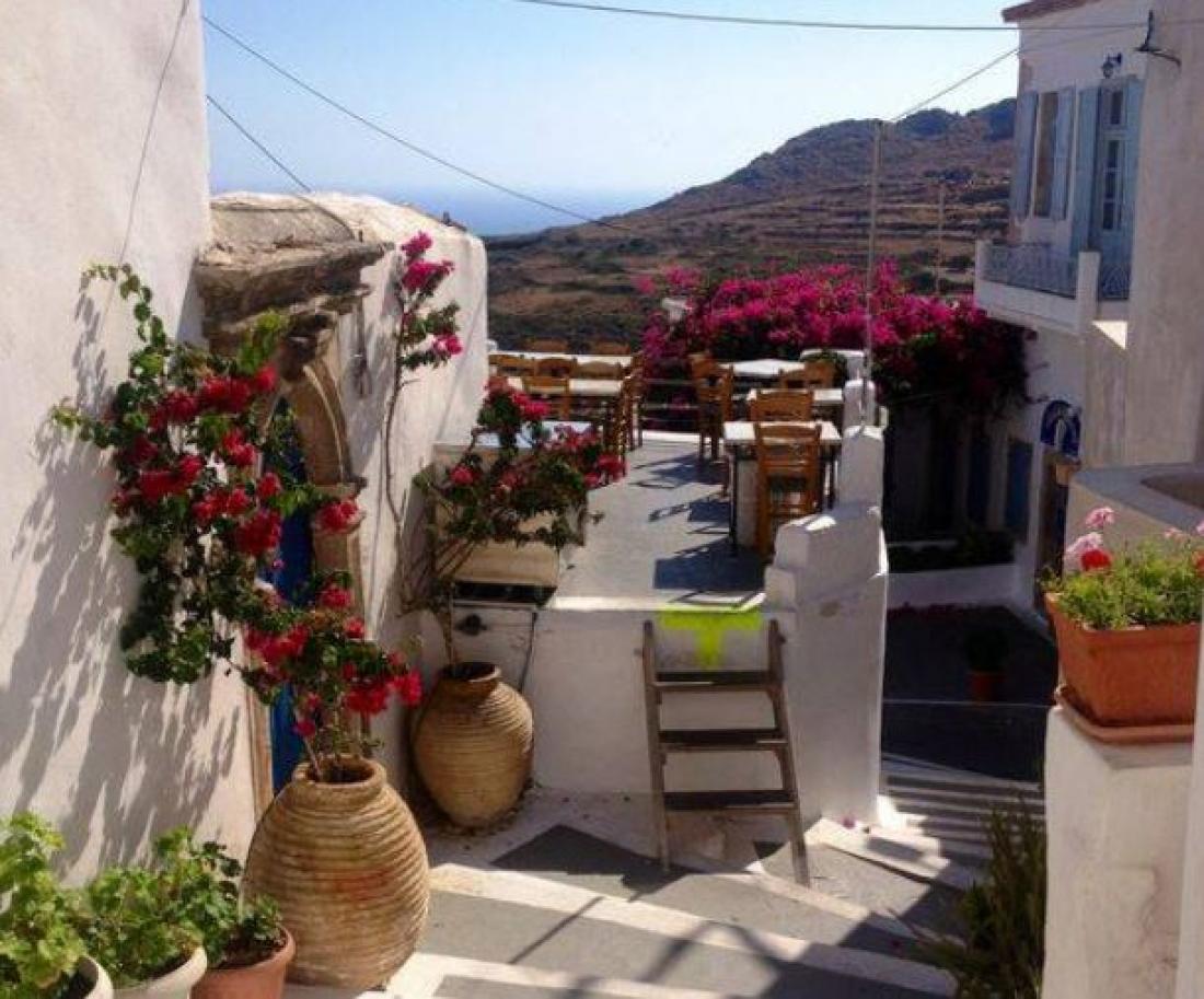 Η πρωτεύουσα του νησιού, η Χώρα, σκαρφαλωμένη σε έναν λόφο στα νότια, έχει την τύχη να διαφεντεύει την ανοιχτή Μεσόγειο, με το ενετικό κάστρο στην κορυφή να επιβλέπει το θαλάσσιο πέρασμα.
