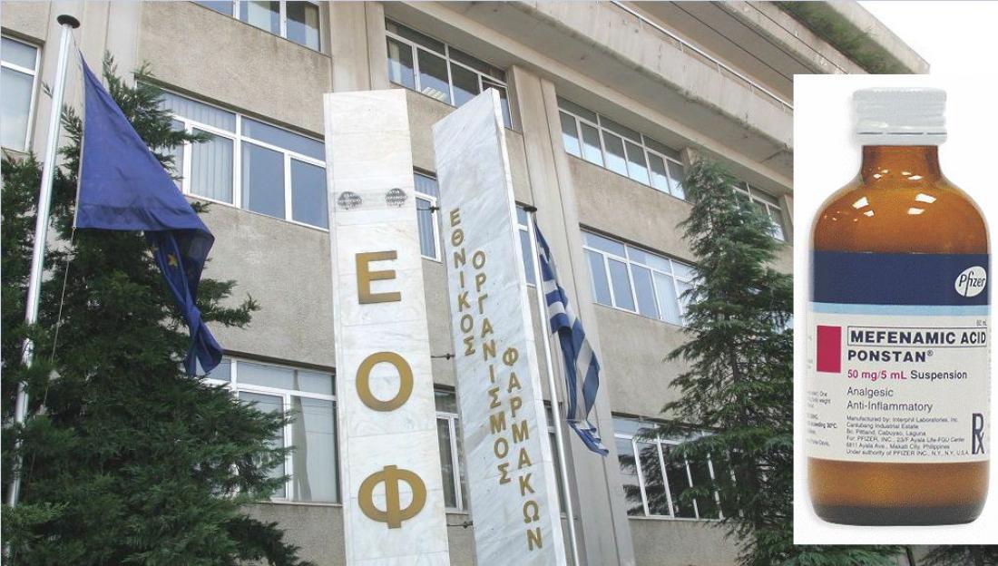 Την ανάκληση όλων των παρτίδων του πόσιμου εναιωρήματος Ponstan 50 mg/5 ml (Αρ. Άδειας Κυκλοφορίας 60079/22-9-08) που βρίσκονται επί του παρόντος στην αγορά, λόγω δυνητικής υπέρβασης των νέων επιτρεπτών ορίων ημερήσιας έκθεσης (PDE) σε στοιχειακές προσμίξεις μολύβδου και λιθίου, σύμφωνα με την ευρωπαϊκή οδηγία ICH Q3D, αποφάσισε ο Εθνικός Οργανισμός Φαρμάκων (ΕΟΦ).