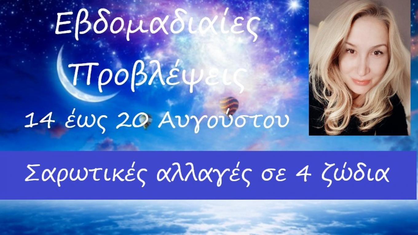 Ζώδια:Η εβδομάδα αυτή στιγματίζεται από την Νέα Σελήνη που θα πραγματοποιηθεί στον Λέοντα. Μία άκρως εκρηκτική χρονική περίοδος, με πολύ ένταση και ξαφνικά γεγονότα, όπου η συμμετοχή του Ουρανού προς τα Φώτα, (Ήλιο και Σελήνη), θα δώσει αναπάντεχα γεγονότα και όλα τα σενάρια είναι πιθανά.